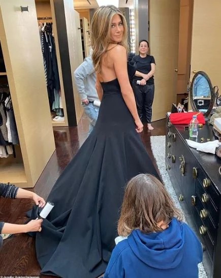 The ex of Brad Pitt was also spotted drinking coffee in her kitchen.And at one point Aniston is seen in her living room putting a record on an old fashioned looking record player.